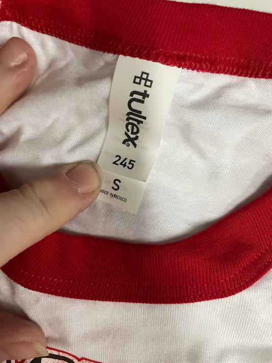 Distressed Skasquatch logo raglan tee - red, size S